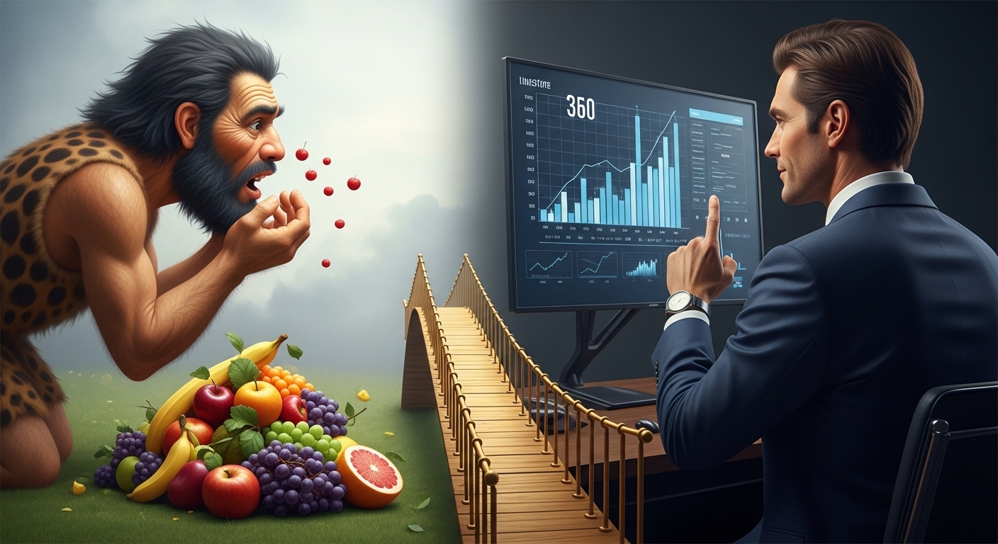 사냥에 성공하면 즉시 배를 채워야 했던 원시인들에게 '저축'은 생소한 개념이었습니다. 이 본능이 남아있어 우리는 내일의 큰 수익보다 오늘의 소소한 지출(쇼핑, 맛집 등)에서 더 큰 쾌감을 느낍니다.