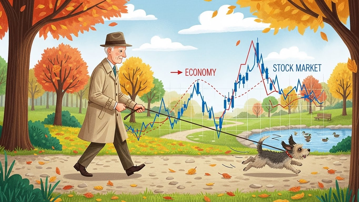 핵심 통찰: "경제와 주식 시장의 관계는 산책하러 나온 주인과 개와 같다." 주인(실물 경제)은 목표 지점을 향해 묵묵히 걸어갑니다. 하지만 개(주가)는 주인을 앞서거니 뒤서거니 하며 잠시도 가만히 있지 않습니다. 때로는 주인보다 너무 멀리 앞서가고(버블), 때로는 너무 뒤처지기도 합니다(폭락). 하지만 중요한 것은 "개는 결국 주인의 곁으로 돌아온다"는 사실입니다. 초보자는 개(주가)의 움직임만 보고 일희일비하지만, 고수는 주인(경제의 펀더멘털)이 어디로 가고 있는지를 봅니다.