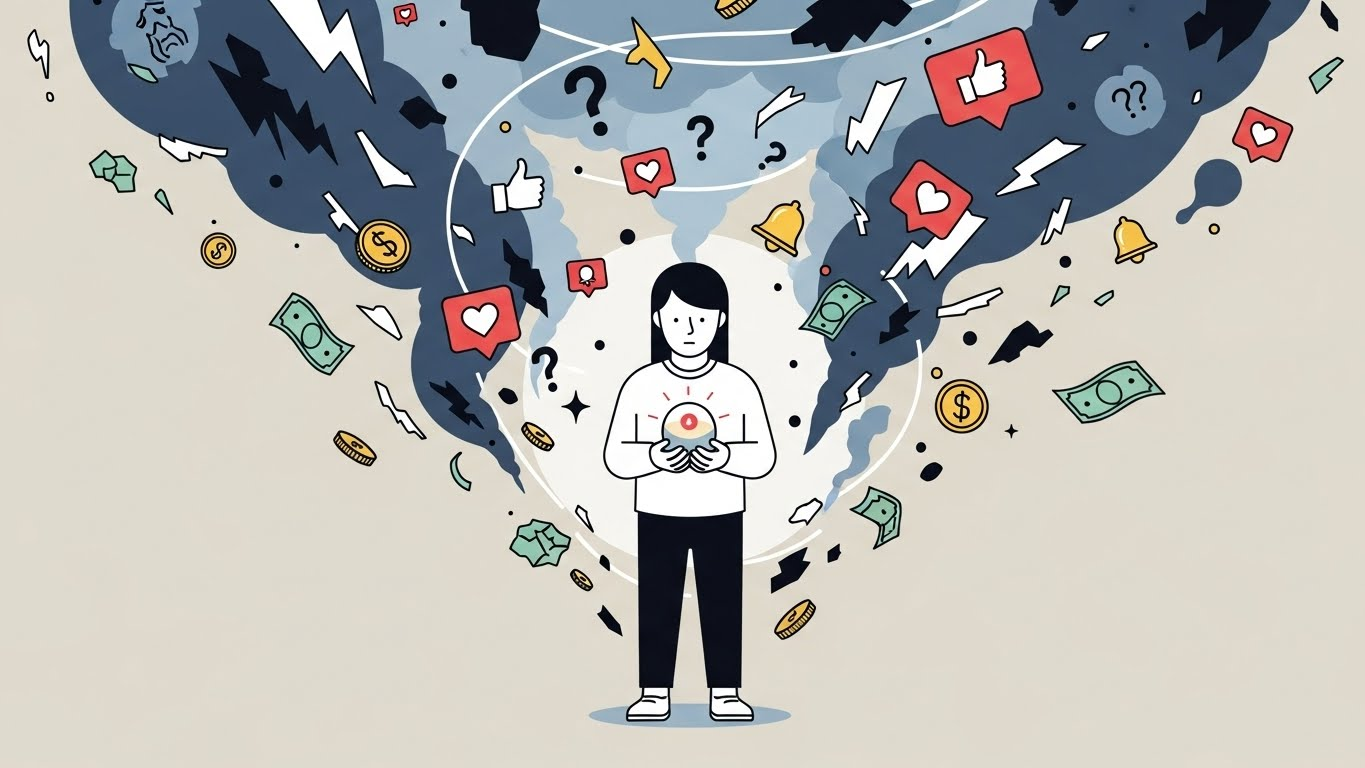 우리는 SNS를 통해 타인의 화려한 삶을 훔쳐보며, "나도 저렇게 행복해야 해", "나도 특별한 사람이 되어야 해"라고 스스로를 채찍질합니다. 하지만 더 긍정적이 되려고 애쓸수록, 우리는 자신의 현재가 초라하다고 느끼며 더 깊은 불행에 빠집니다.