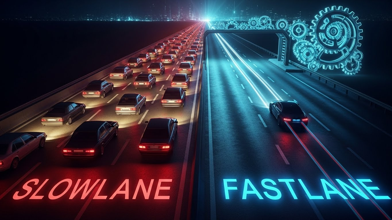 우리는 흔히 '느린 차선(Slowlane)'을 통해 부자가 되라고 배웁니다. 열심히 절약하고, 돈의 10%를 주식에 넣고, 40년 동안 복리를 기다리는 방식입니다. 하지만 이 방법은 '가장 귀한 자원인 시간'을 희생하고, 부자가 된다는 보장도 없습니다.